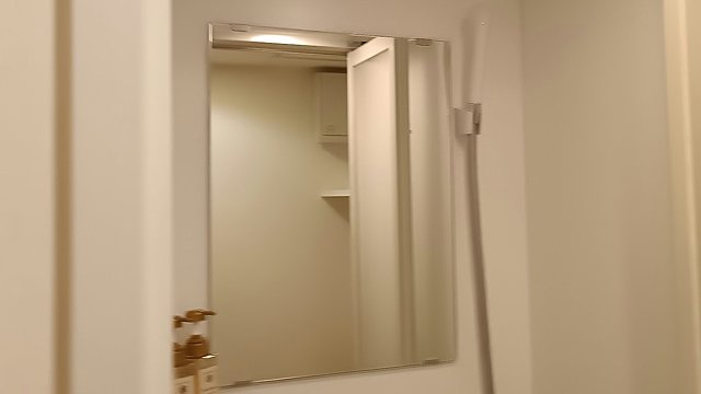 脱衣所にはメイク落とし、洗顔料、化粧水、乳液がボトルで置いてあります。