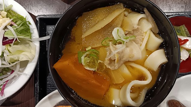 「『ほうとう』ってタダの野菜煮込みうどんでしょ?」…とナメていましたが、すみませんでした!おいしいっ!根菜類がたくさん入っていて、身体の芯から温まる!