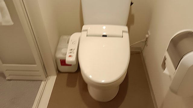ウォシュレットトイレ。シャワーブースとの間には薄いドアがあります。