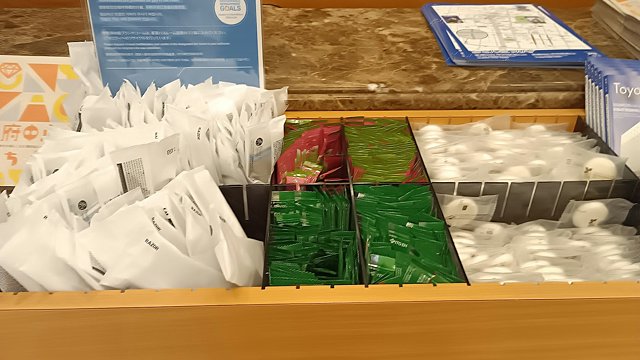 室内に置いてないアメニティは、フロント前のアメニティバイキングから頂きます。