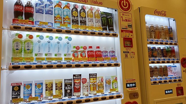 飲み物の自販機もあり、100~150円程度のコンビニと同じくらいの値段設定で良心的!