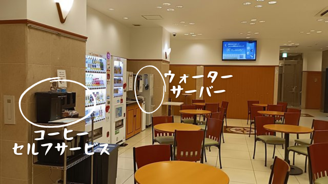 ラウンジには飲料水・コーヒーのフリードリンクサービスがあります。